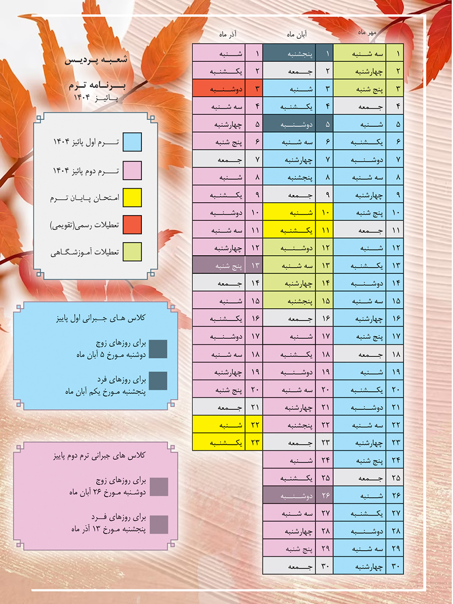 همراهان گرامی لطفاً به برنامه ی کلاس های جبرای دقت فرمایید
